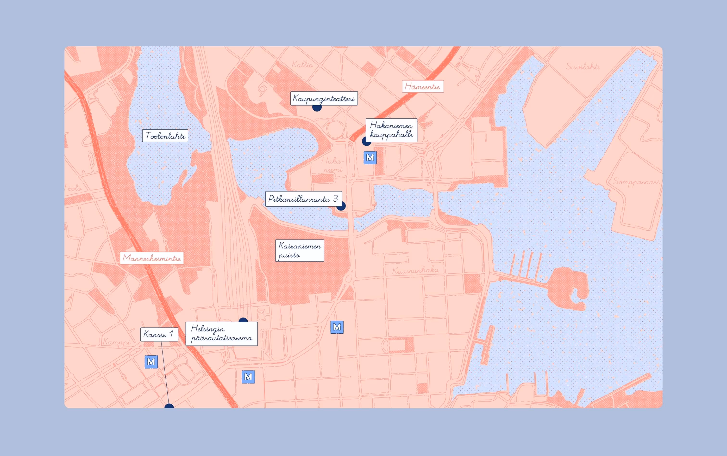 Based on strategic research we identified the type of audience we were most likely to attract. We then defined a set of brand values that this audience would respond to. Our insight and tagline became ’Work in the most painterly area in Helsinki’. We delivered on this insight with a brand centered around real water colour illustrations. This unique approach helps us stand out against the competition and increase recall.