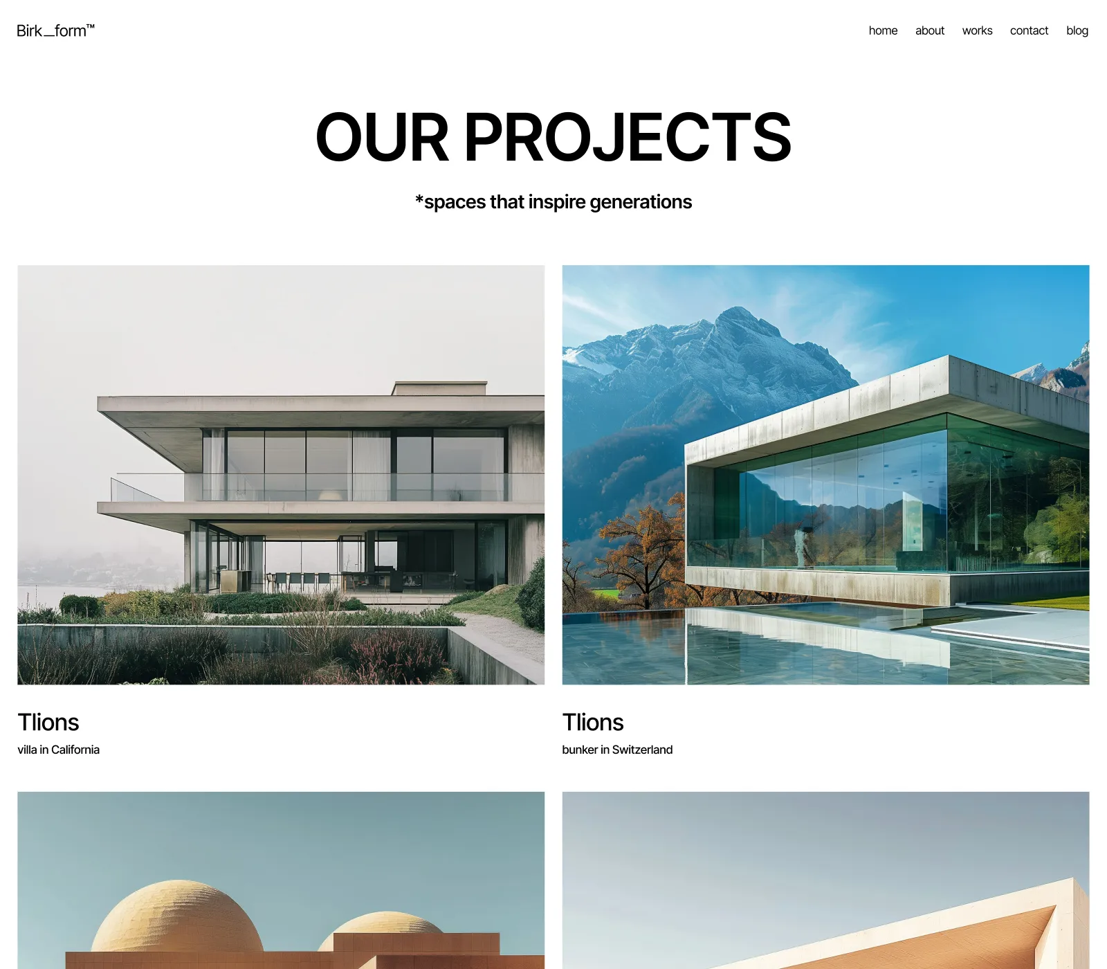 Birkform includes CMS-driven projects and blog collections, allowing you to add new content quickly and efficiently within Webflow.